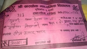 तिलाचन पाण्डे गुल्मी, पुष १० । गुल्मीको मुसीकोट नगरपालिका वडा २ मा रहेको खस्थोक माध्यमिक विद्यालयमा प्रमाणपत्रको प्रतिलिपी निकाल्दा रु.३ हजार दस्तुर तिर्नुपरेको एक अभिभावकले