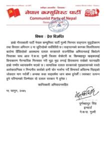 अनिल खत्री २० फागुन, गुल्मी । बिप्लव नेतृत्वको नेपाल कम्युनिष्ट पार्टी गुल्मीका जिल्ला सेक्रटरी पक्राउ परेका छन् । जिल्ला प्रहरी कार्यालय गुल्मीले जिल्लाको सदरमुकाम तम्घासबाट