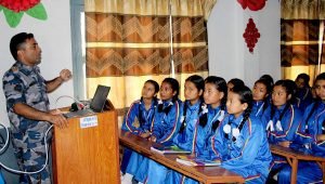गुल्मीको सिद्धबाबामा ‘ज्ञानीसँग हाम्रा नानी’ बिद्यार्थी पढाउँदै सशस्त्र प्रहरी