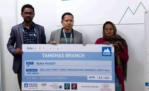 टोपलाल अर्याल गुल्मी, १३ माघ । एनएमबी बैंक लिमिटेड तम्घास शाखाले दुर्घटना मृत्यु दाबी बापत १ लाख ३३ हजार १४० रुपैयाँ रकम भुक्तानी गरेको छ