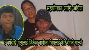 सागर भण्डारीफाल्गुण, १८ गुल्मी । मुसिकोट ७ वामी न्वाराका भिम नेपाली विभिन्न रोगले थला परेपछि उपचारमा सहयोग गर्न परिवारले अपिल गरेका छन् । आर्थिक अवस्था