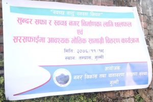 सूर्य सुनारगुल्मी फागुन १९ । गुल्मीमा सुन्दर सफा र स्वचछ नगर निर्माण लागि छलफल तथा सरसफाई आवश्यक भौतिक सामग्री वितरण कार्यक्रम सोमबार एक कार्यक्रमका विच